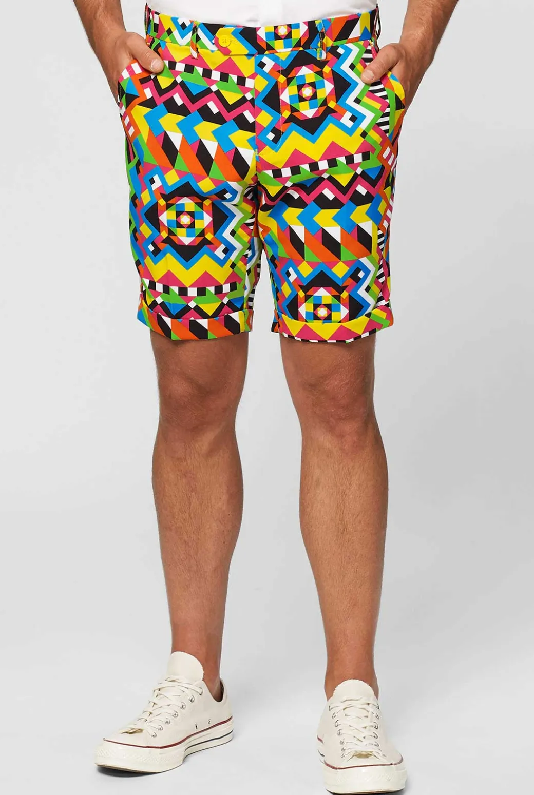 Kleding heeft een sterk effect op je humeur. Dus waarom zou je jeniet net zo uitbundig kleden als je karakter met dit kleurrijke pak? Het is een echte conversatiestarter, dus maak je klaar voor een hoge dosis aandacht. OppoSuits attract!
