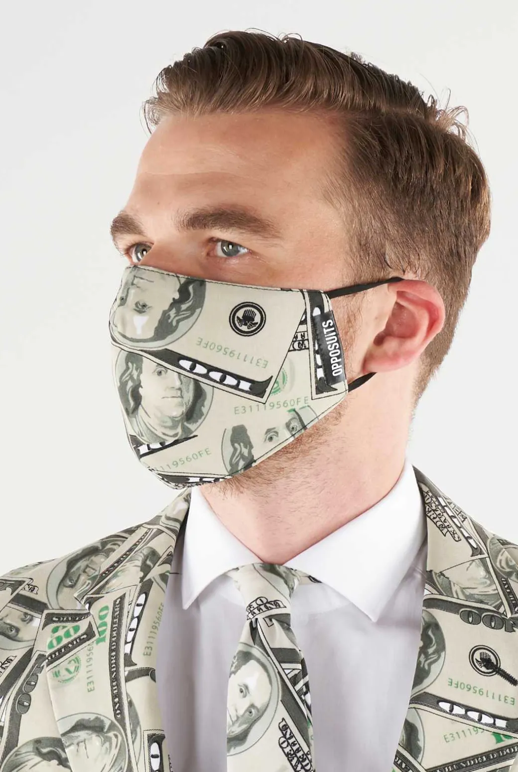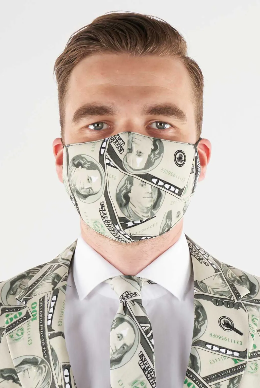 Money won’t make you happy, but the Cashanova will. This money face mask is affordable, responsible, comfortable and priceless all at the same. Wear it and let other people know that you are worth every buck. It’s all about the Benjamins!OppoSuits Face Masks are made from leftover stock fabric. This way we make sure as little fabric as possible goes to waste. The shell fabric is made out of 100% polyester while the inner lining is made from 100% cotton for extra comfort. All of our face masks have elastic earloops which are equipped with adjustable and removable clips so they will make for a perfect fit. Please note that while our face masks do look very cool, they are non-medical and therefore offer no protection for yourself. Also, due to safety and sanitary reasons we do not accept any returns on these products.