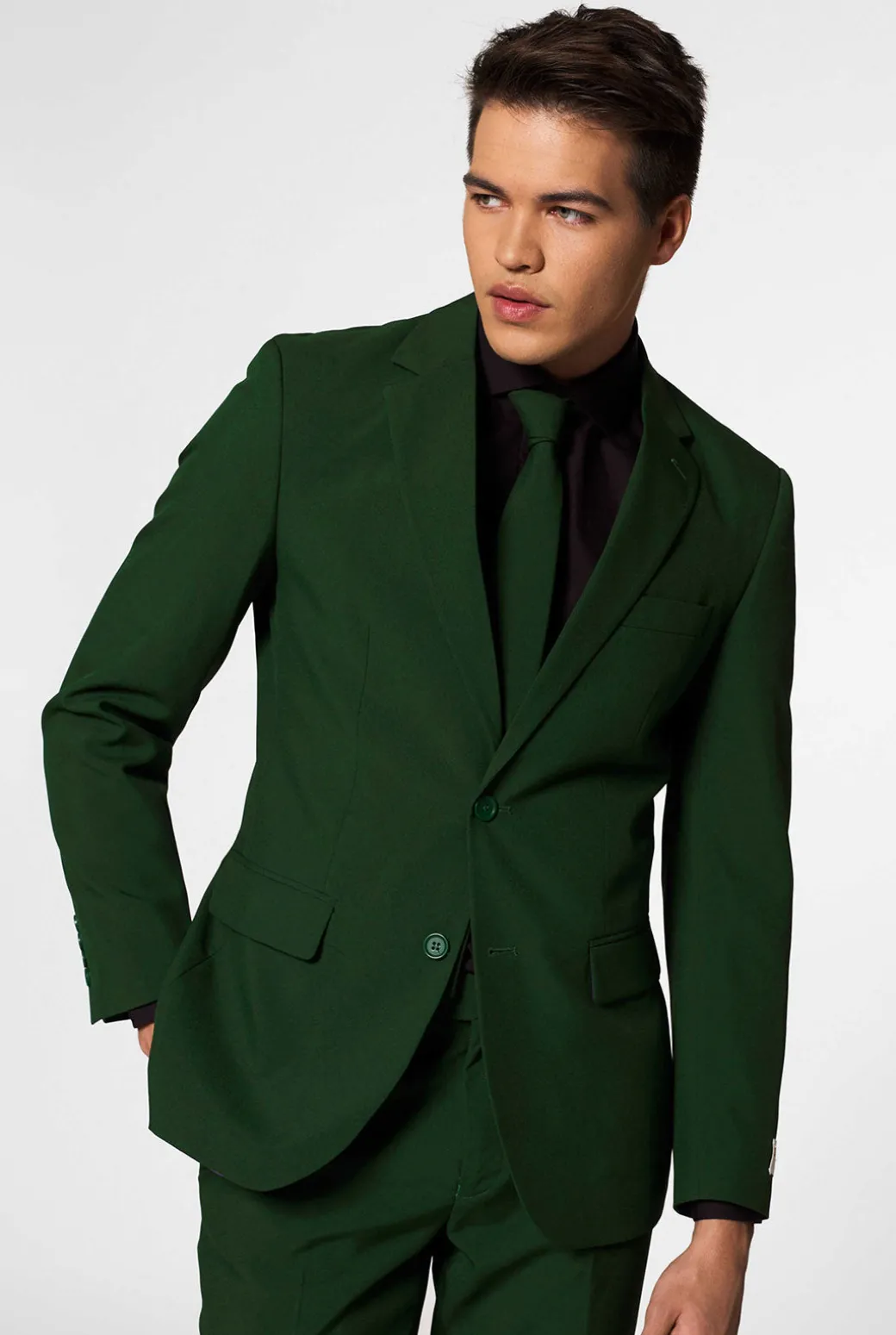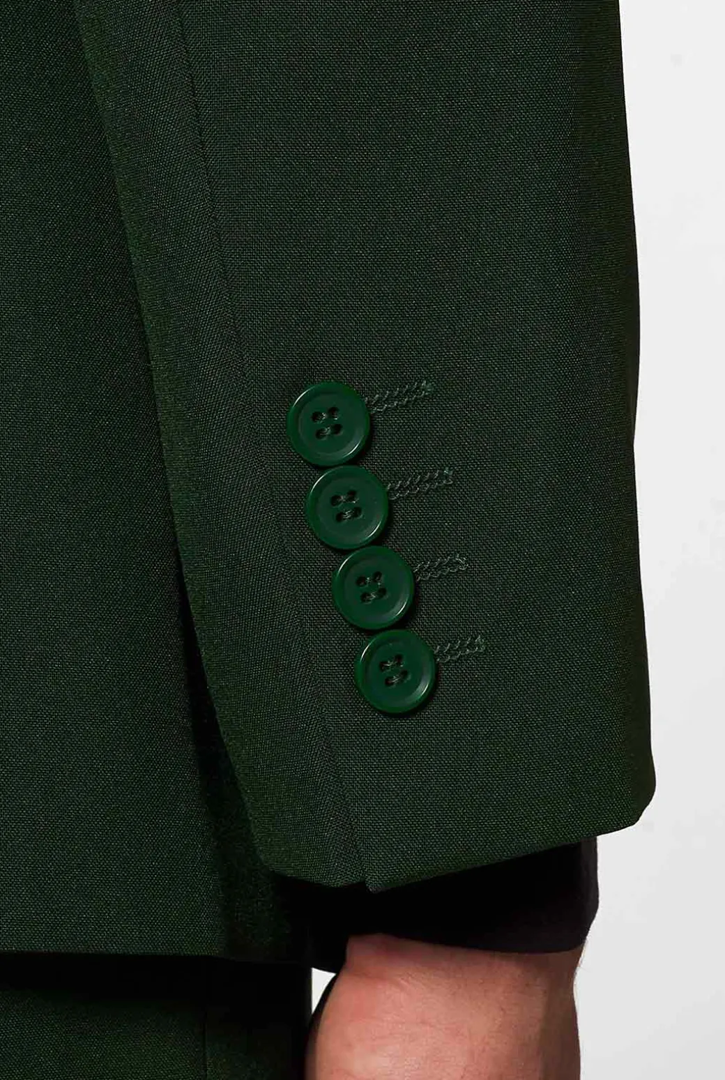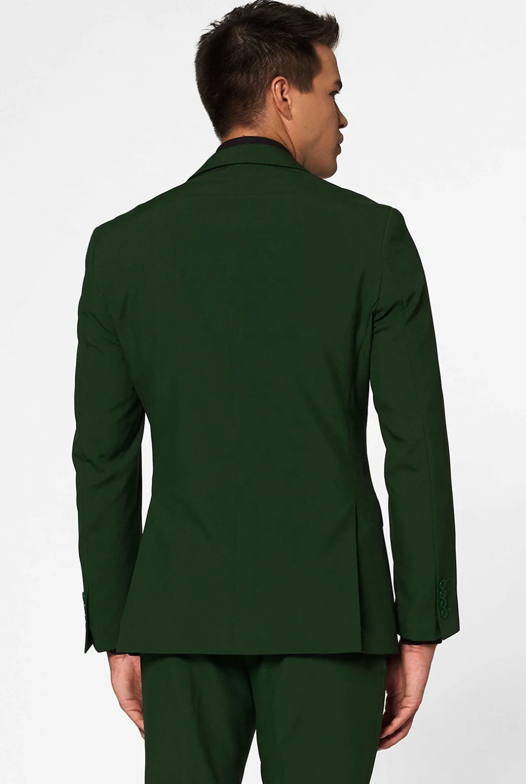 Laat jouw stijl opbloeien met ons stijlvolle Glorious Green groen pak voor heren. De levendige en tijdloze kleur groen geeft een frisse en energieke uitstraling. Het Glorious Green pak is dan ook perfect voor degenen die willen opvallen of een statement willen maken. Naast dat het groene pak ontzettend stijlvol is, is het ook gedurfd. Het donkergroene pak is gemakkelijk te combineren met een wit of zwart gekleurd overhemd en is geschikt voor verschillende gelegenheden. Van feestjes tot bruiloften, de Glorious Green voegt een vleugje charisma toe aan elke gelegenheid. Durf groots te denken en omarm de kracht van de kleur groen!