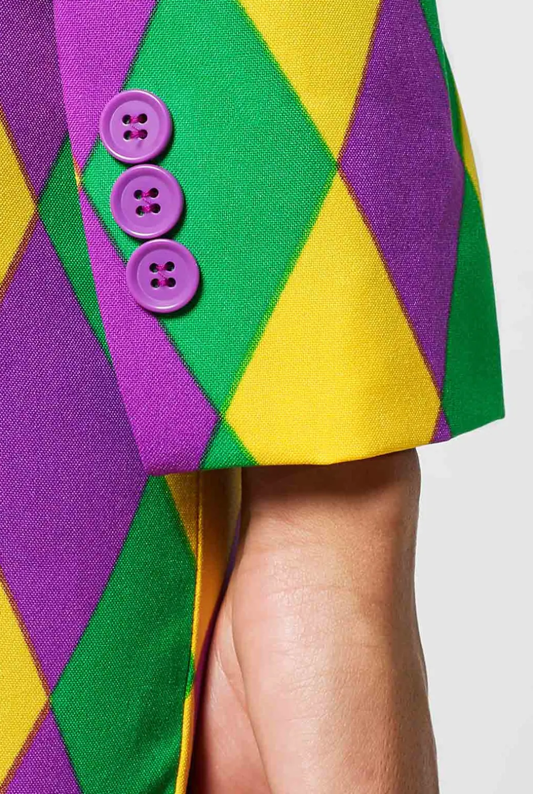 Verander in de koningin van elk feestje met dit goud, groen en paarse pak van OppoSuits. Wat ons betreft de perfecte outfit voor carnaval, maar twijfel alsjeblieft niet om ‘m ook te dragen naar andere gelegenheden. We waarschuwen je wel alvast voor alle complimenten en high-fives die je gaat krijgen.