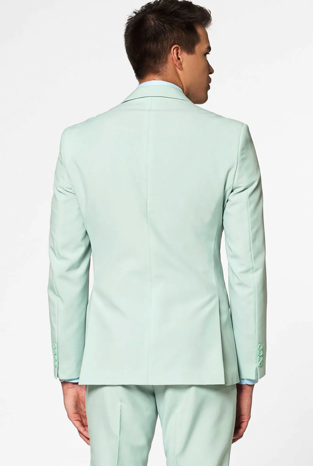 De kleur mint geeft een frisse uitstraling aan elke outfit. Draag deze kleur van top tot teen voor een écht coole look en maak een fashion statement. Van een zomerse bruiloft tot een feestje in de stad; dit mintgroene pak laat jou stralen op elke zomerse gelegenheid.
