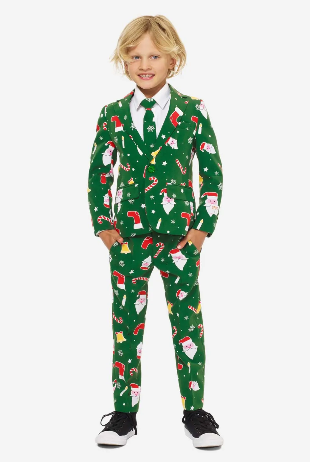 Ben je op zoek naar een formeel pak dat je kleine jongen maar al te graag aan wilt trekken? Zo ja, dan ben je op het juiste adres. Geef hem dit coole groene pak en hij vergeet spontaan alle andere cadeautjes waar hij om gevraagd heeft. Het is waarschijnlijk nog nooit zo makkelijk geweest om het ideale kerstcadeau te kopen. Geen dank!