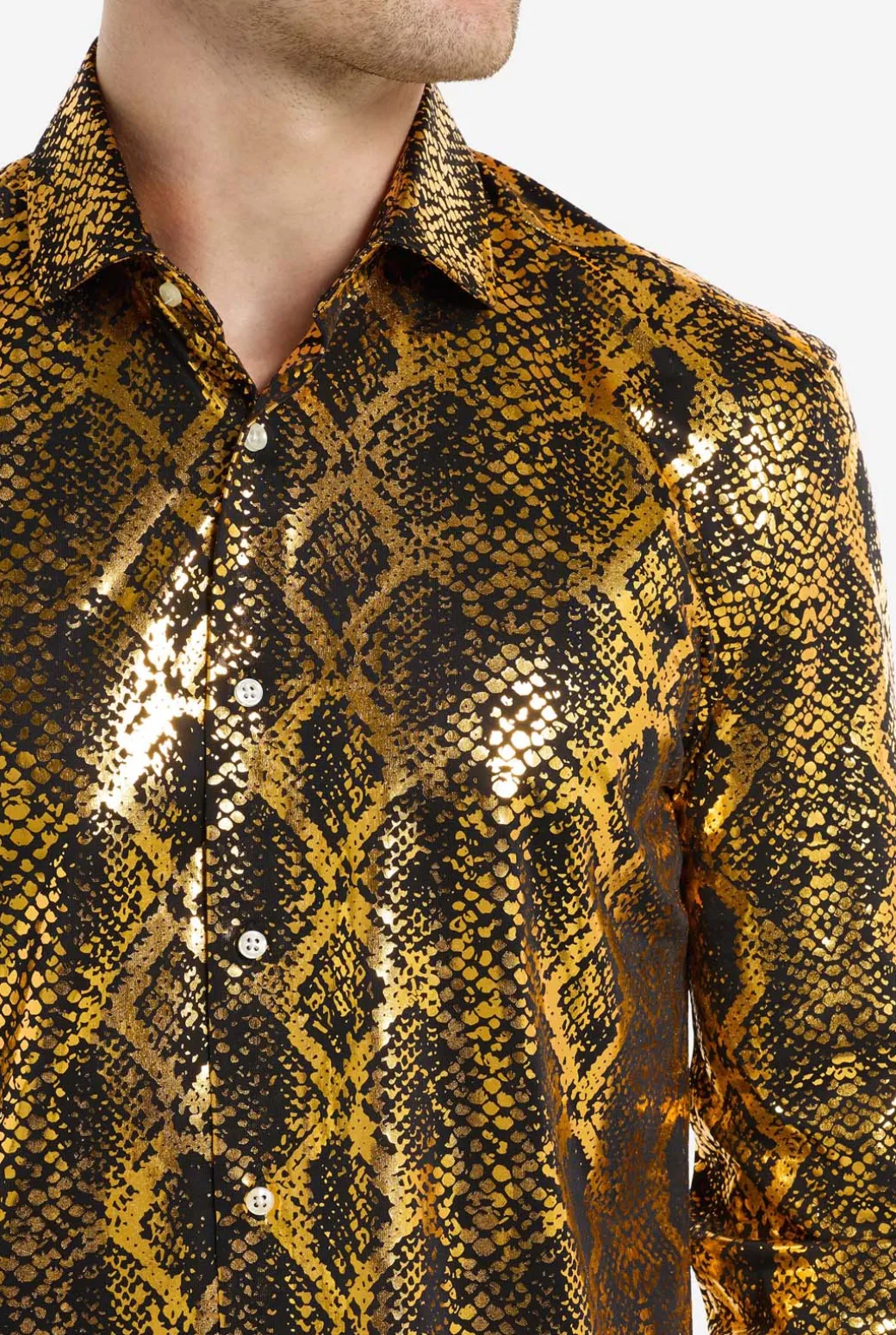 Glijd over de dansvloer en verblind ze met je gouden schubben. De Shiny Snake is jouw gouden ticket naar een avond vol bewonderende blikken en een spotlight die constant op jou gericht is. Een SssSssuper overhemd!