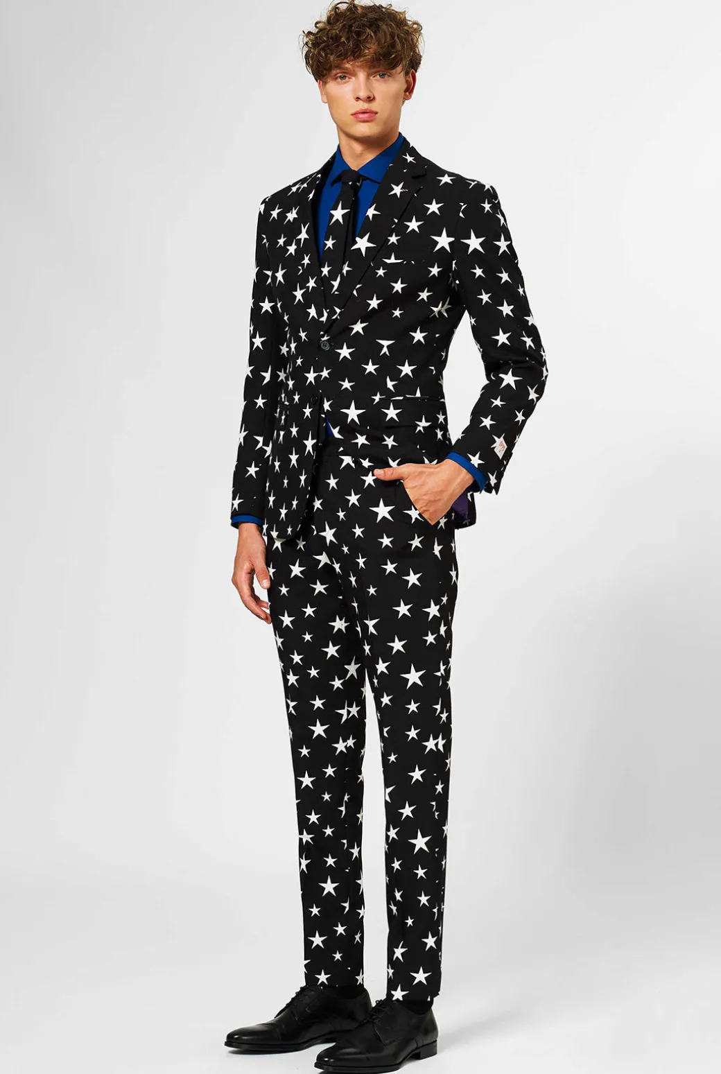 De ster van het feestje word je niet zomaar. Maar als je dit pak draagt, staat het in de sterren geschreven dat het lukt. Deze print is zo stijlvol, dat wij durven te garanderen dat iedereen die jou in dit sterrenpak ziet compleet starstruck is. En zo niet, dan zijn ze gewoon jaloers.