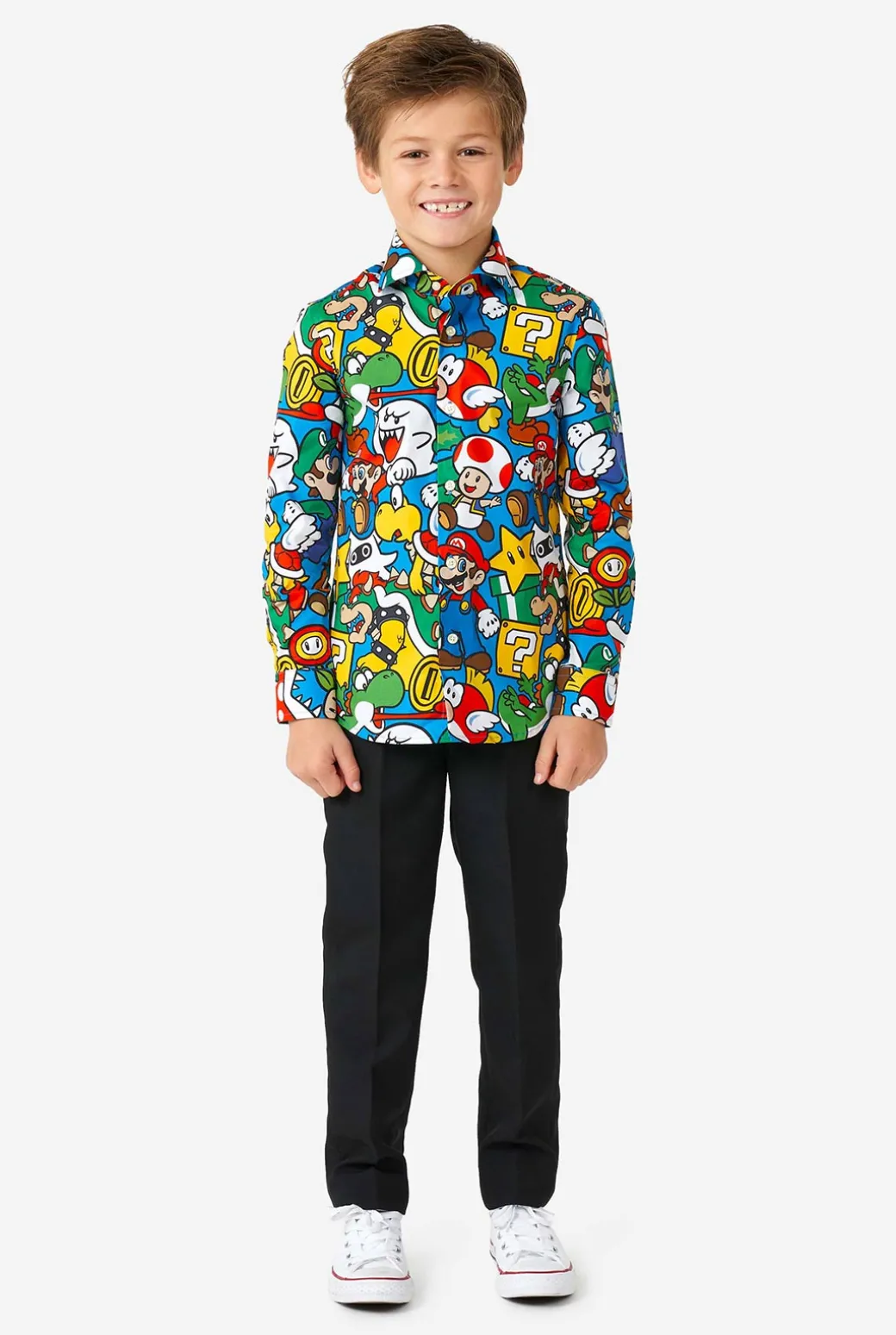 Is je kleintje gek op videogames? Voel je een gevoel van nostalgie als het gaat om Super Mario? We hebben hier het antwoord op uw sentimentaliteit en zijn spel. Geef hem kracht met dit kleurrijke Super Mario™-shirt met lange mouwen. Bedekt met een all-over print met alle iconische personages uit het Mushroom Kingdom, zal hij het outfitspel zeker winnen. Dit shirt heeft een lange pasvorm, waardoor hij gemakkelijk in zijn broek kan worden gestopt en zelfs tijdens het rennen blijft het erin, omdat het speciaal is ontworpen om te dragen in combinatie met een pak.