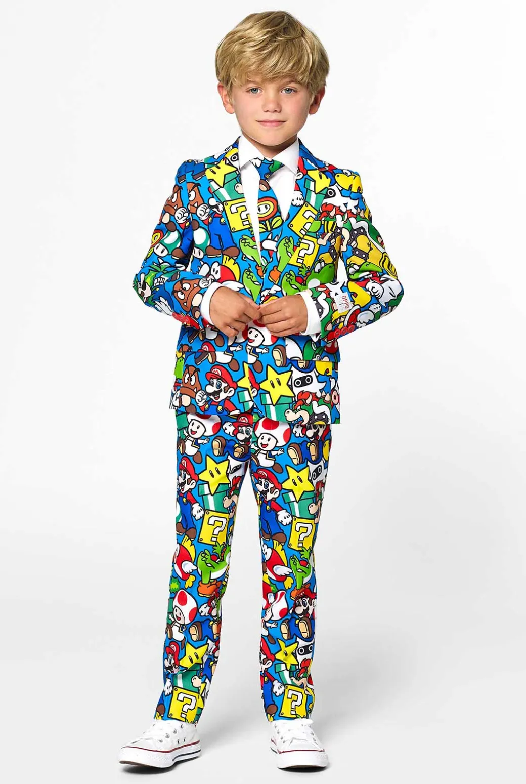 Is jouw kleine man gek op computerspelletjes? En word je zelf ook een beetje nostalgisch als je aan Super Mario denkt? Dan is dit kleurrijke, officiële Super Mario™-pak echt iets voor jullie. Met een all-over-print met alle iconische karakters uit het Mushroom Kingdom, weet je zeker dat hij de outfit game wint op elk feestje.