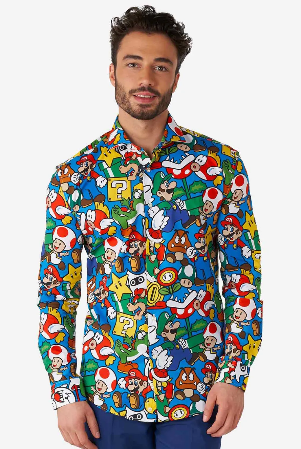 Het geweldige Super Mario-pak is nu ook verkrijgbaar als overhemd! Als je je ooit hebt afgevraagd hoe mode in het Mushroom Kingdom eruitziet, dan is dit shirt het antwoord. Een all-over print met alle iconische personages uit de Nintendo-franchise. Geef je garderobe die welverdiende 1-up met dit Super Mario ™-overhemd!