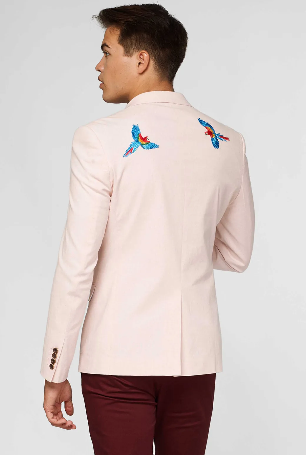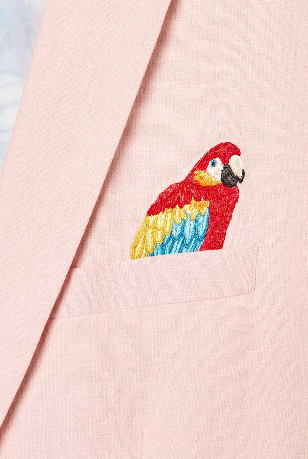 De lente en zomer zijn dé seizoenen om levendige stijlkeuzes te maken. Deze zachtroze OppoSuits Deluxe blazer is gemaakt van een luchtige, hoge kwaliteit katoen-linnen mix en daardoor perfect om jou cool te houden terwijl je stijlvol voor de dag komt. Met twee uit het oog springende, geborduurde papegaaien en een voering met palmbladeren heeft dit jasje het allemaal: fun, luxe en stijl.
