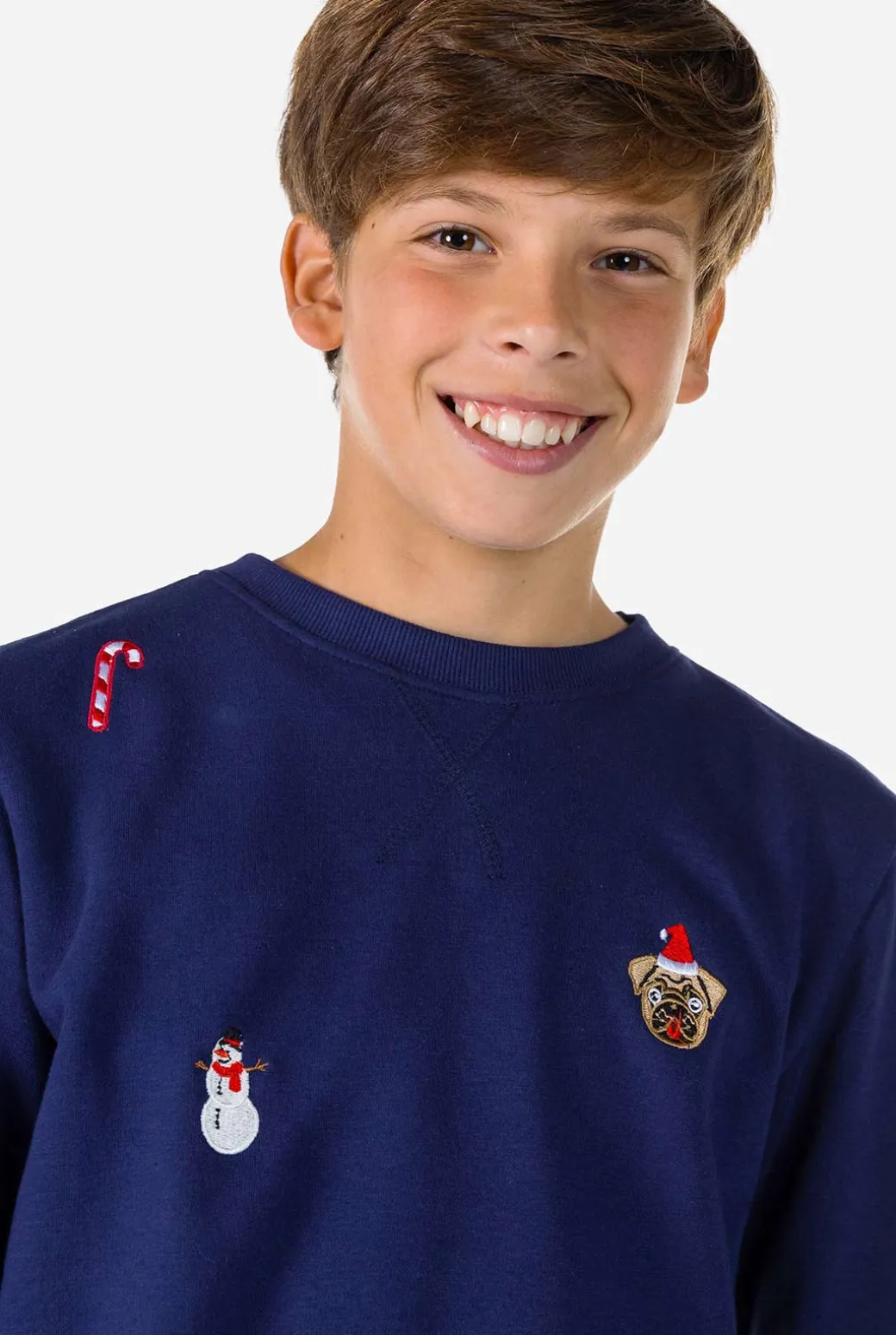 Als je op zoek bent naar een stijlvolle en verfijnde kersttrui om jezelf in te hullen tijdens de feestdagen, dan is de marine-kleurige X-Mas Icons het stuk voor jou. Deze effen donkerblauwe Deluxe Sweater is geborduurd met essentiële kersticonen en is ontworpen met een zachte stof waardoor je hem vanaf nu tot aan eerste kerstdag (en ver daarna) zult willen dragen.