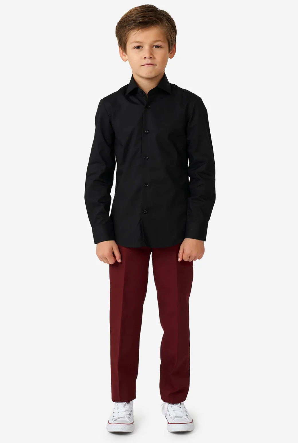 Op zoek naar een overhemd om de outfit van je kleine heer compleet te maken? Dit zwarte overhemd voegt charme en verfijning toe aan zijn look. Het is het ideale kledingstuk dat bij elk kostuum past, van stoer tot basic. Bovendien is dit shirt lang genoeg om in zijn broek te stoppen en blijft het daar – ook als hij rondrent – omdat het speciaal ontworpen is om te dragen bij een pak.
