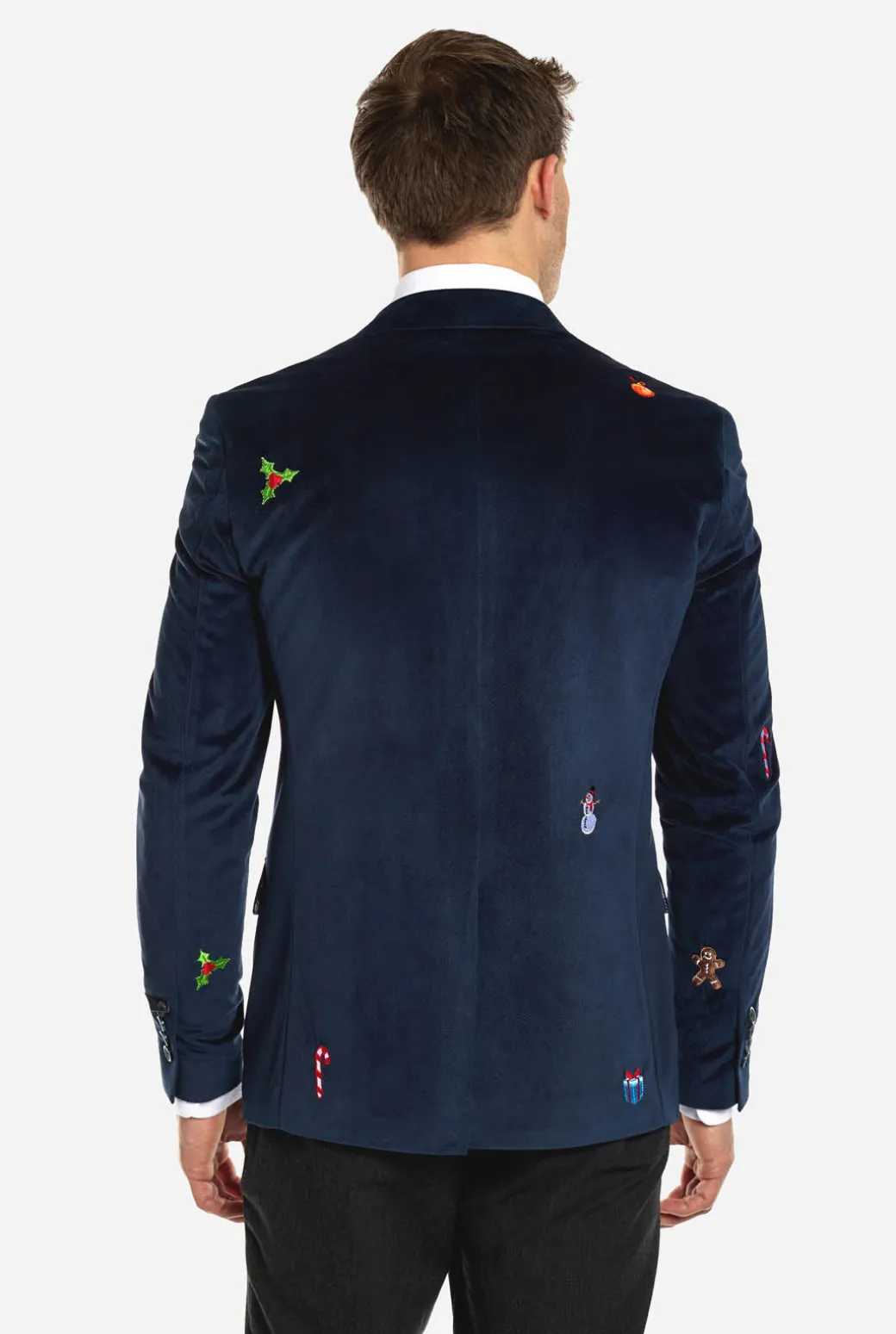 De juiste kerstoutfit is belangrijk om in de feestelijke sferen te komen. Deze OppoSuits Deluxe blazer geeft jouw kerstlook direct een upgrade, dankzij zijn rijke velvet stof en stijlvolle slim fit pasvorm. Het is een zacht, diepblauw exemplaar vol met geborduurde kersticoontjes, wat ervoor zorgt de je de show steelt op elk kerstfeest.