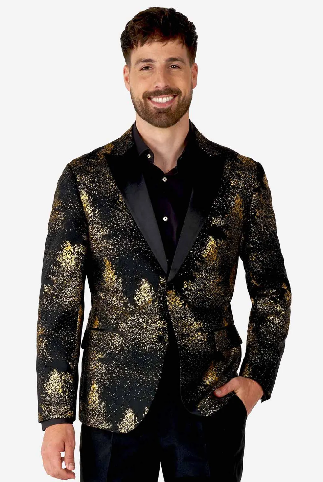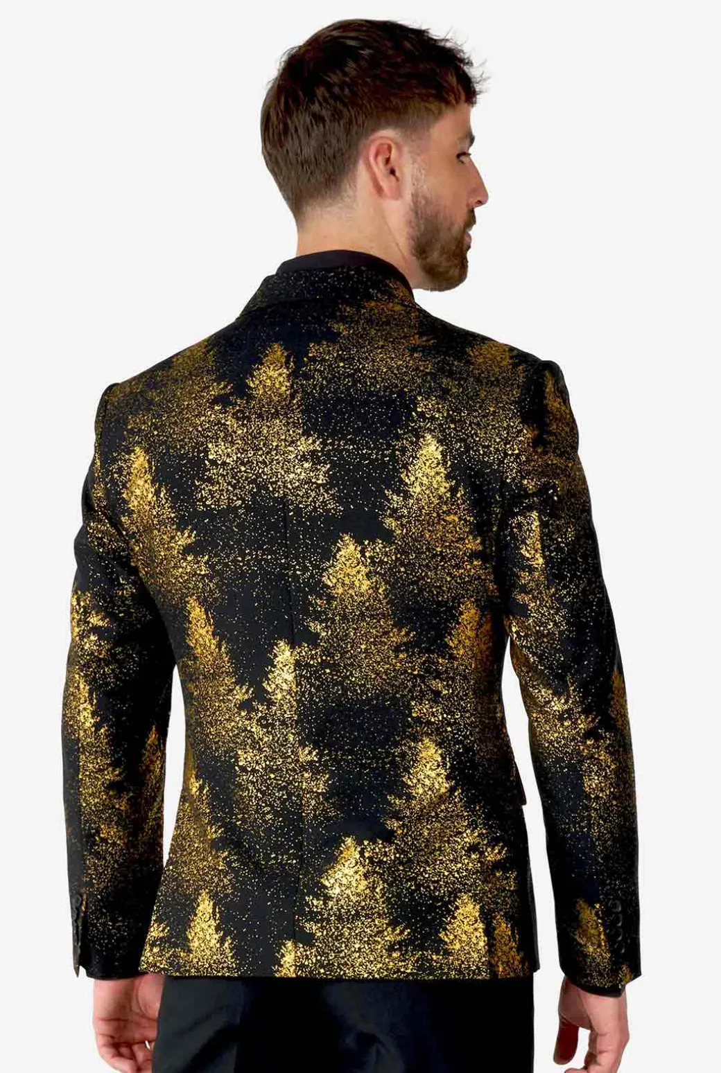 De feestdagen zijn een speciale tijd vol gezellige vibes met familie en vrienden. Als je er alleen maar aan denkt, schitter je van vreugde en met deze unieke blazer kun je die glans echt laten zien waar je ook gaat. Deze kerstblazer is bedekt met goudfolie dennenbomen die van jou de meest feestelijke man in de kamer maken. Beleef een vrolijk kerstfeest met de Festive Forest blazer!