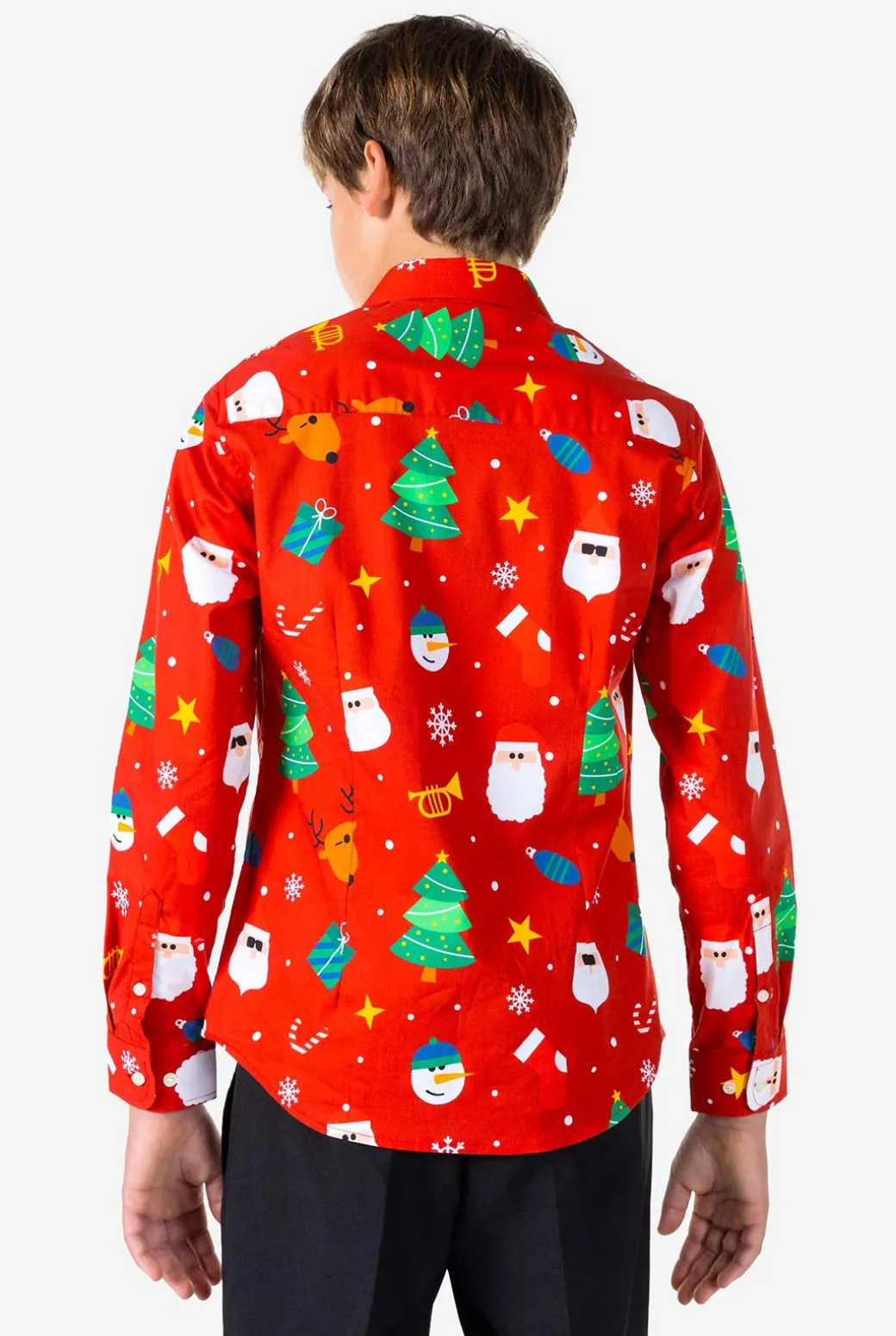 Wil je kind er extra cool uitzien en opvallen deze feestdagen? Zoek niet verder dan het rode Festivity-shirt. Het heeft de Kerstman, rendieren, kerstbomen en glinsterende sterren, dus het is perfect om te dragen in combinatie met een pak. Je hoeft het alleen maar te dragen!