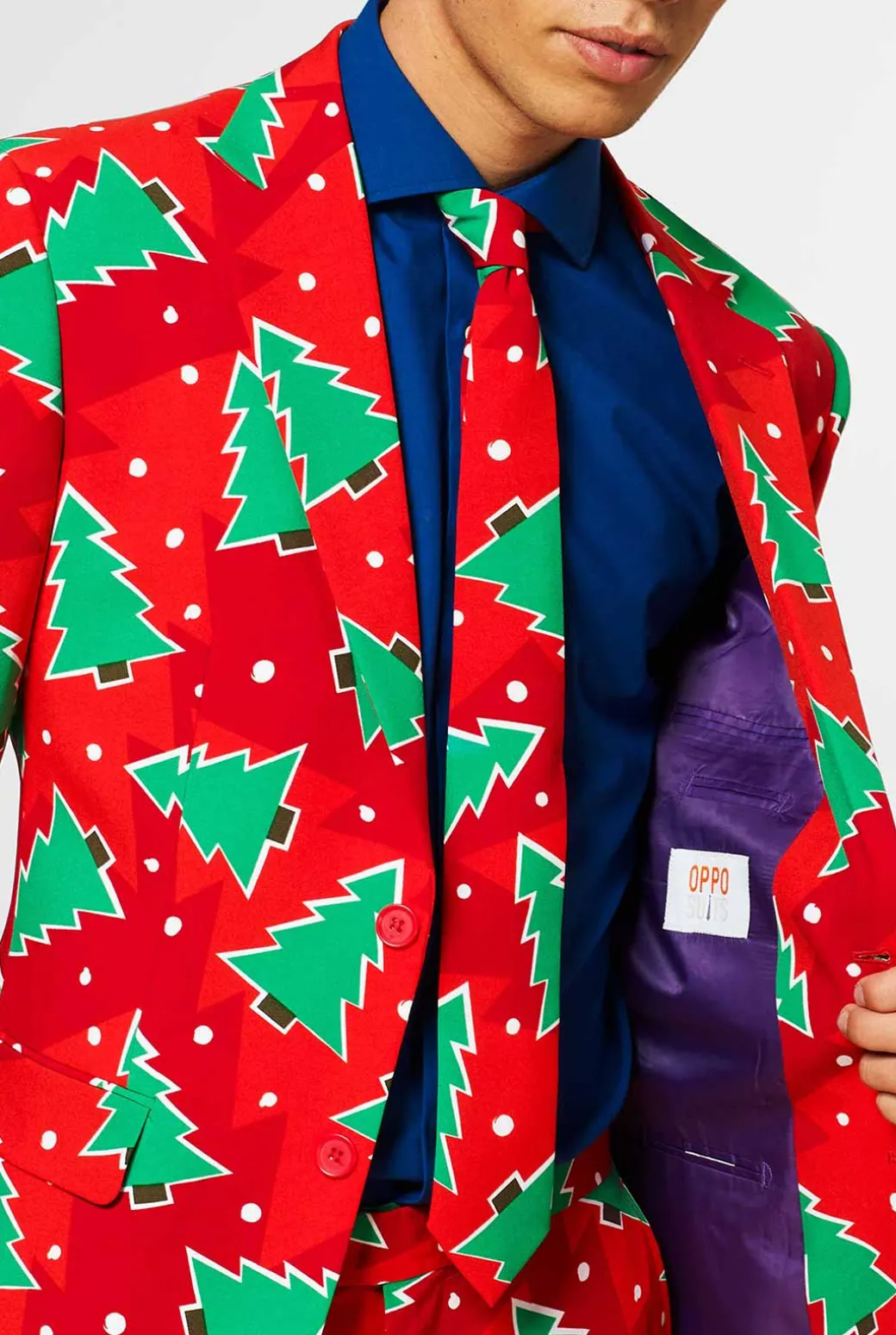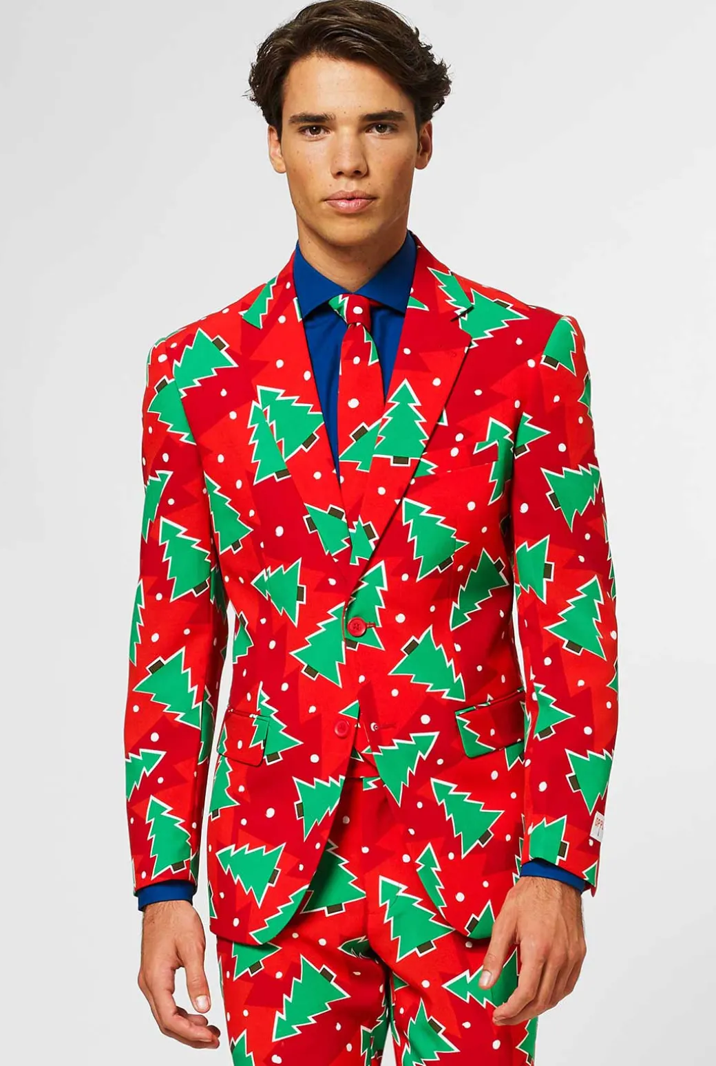 Heb je het gevoel dat je versierd wordt door deze kerstboom? Begrijpelijk, want dit pak is de ultieme outfit voor het kerstseizoen. Meestal is de kerstboom het middelpunt van het huis tijdens de feestdagen, maar deze keer kan jij de feestelijke eye-catcher zijn met dit stijlvolle kerstbomenpak.