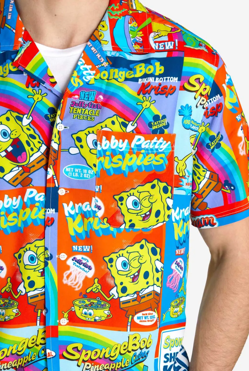 SpongeBob’s geboorteplaats Bikini Bottom is een levendige en gezellige plek. Omarm de levendige, zonnige sfeer van je favoriete onderwatervrienden met het SpongeBob™ Cereal Hawaiiaanse shirt. Het is het perfecte kledingstuk om te dragen op het strand, aan het zwembad of zelfs op vakantie, maar ook als je op zoek bent naar een relaxed overhemd terwijl je geniet van je ontbijtgranen.