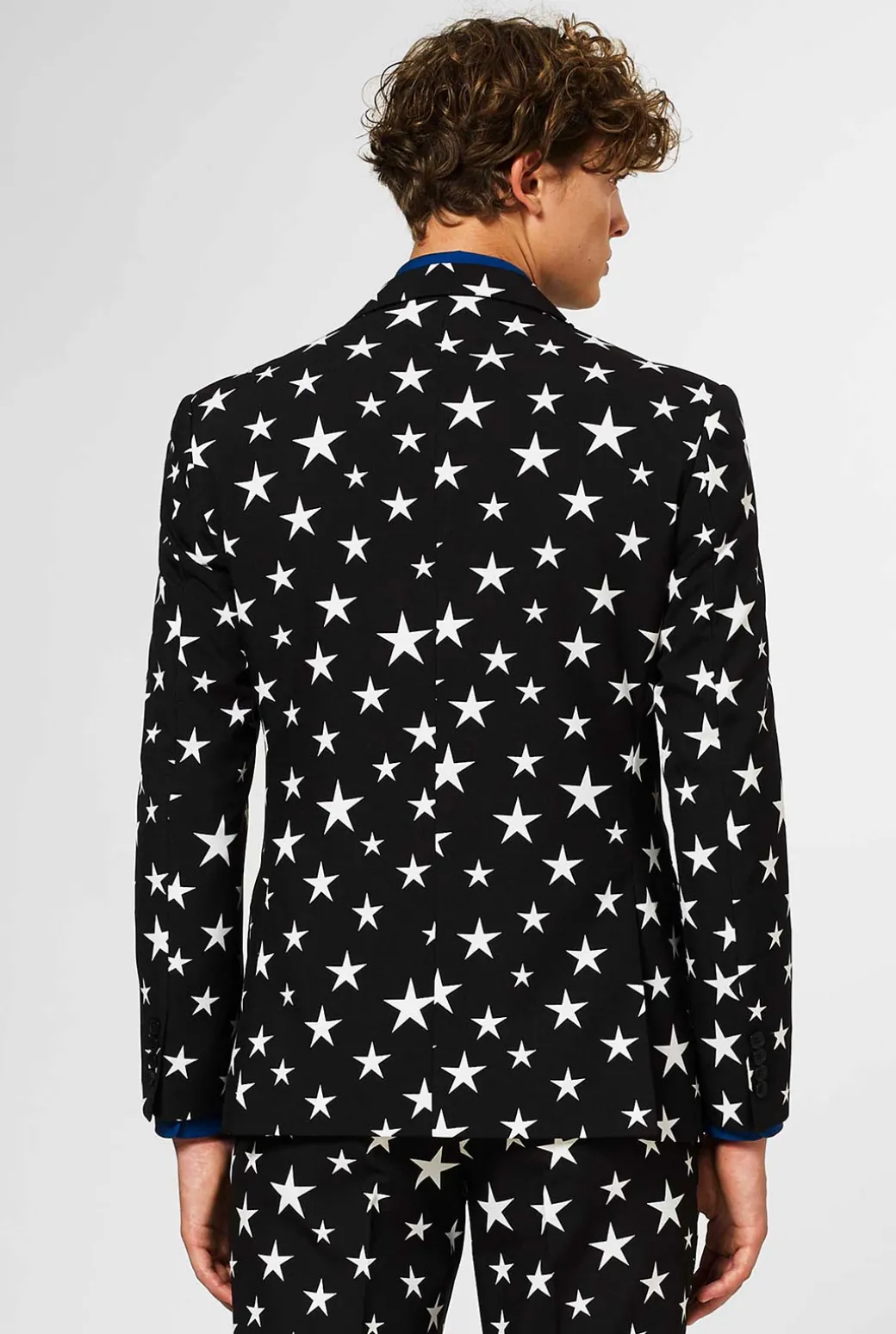 De ster van het feestje word je niet zomaar. Maar als je dit pak draagt, staat het in de sterren geschreven dat het lukt. Deze print is zo stijlvol, dat wij durven te garanderen dat iedereen die jou in dit sterrenpak ziet compleet starstruck is. En zo niet, dan zijn ze gewoon jaloers.