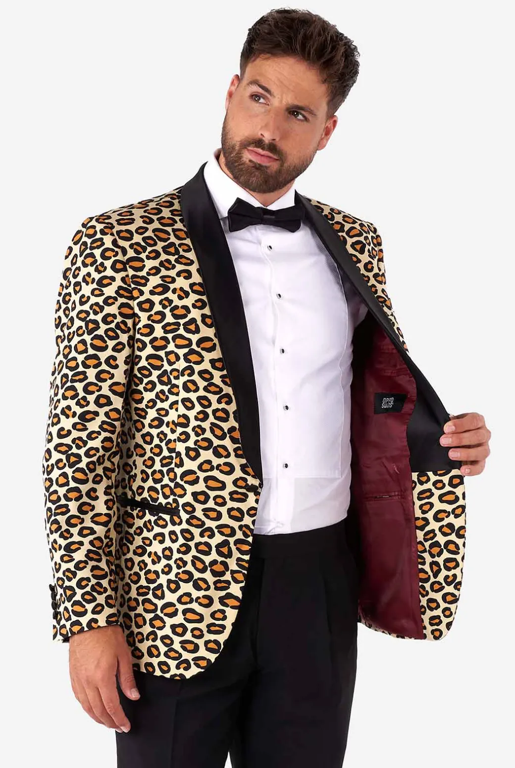 Smokings worden meestal geassocieerd met klasse, elegantie en chique diners. Gelukkig voor jou betekent dat niet dat je je innerlijke beest in een kooi moet stoppen. De Jag Tuxedo is de perfecte oplossing als je je chic wilt kleden, maar ook wilt laten zien dat je een beetje een wilde kat bent. De smoking wordt geleverd met een jaguar geprint jasje met satijnen sjaalkraag, een zwarte broek met dubbele plooi en een vlinderdas. Koop vandaag nog The Jag Tuxedo en laat de betonnen jungle je brullen horen!