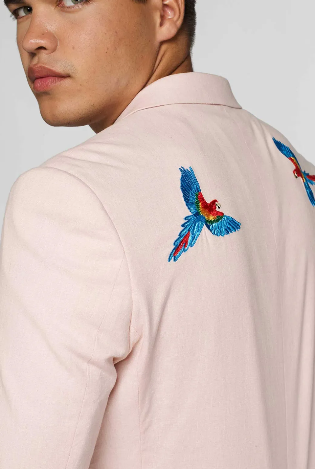 De lente en zomer zijn dé seizoenen om levendige stijlkeuzes te maken. Deze zachtroze OppoSuits Deluxe blazer is gemaakt van een luchtige, hoge kwaliteit katoen-linnen mix en daardoor perfect om jou cool te houden terwijl je stijlvol voor de dag komt. Met twee uit het oog springende, geborduurde papegaaien en een voering met palmbladeren heeft dit jasje het allemaal: fun, luxe en stijl.