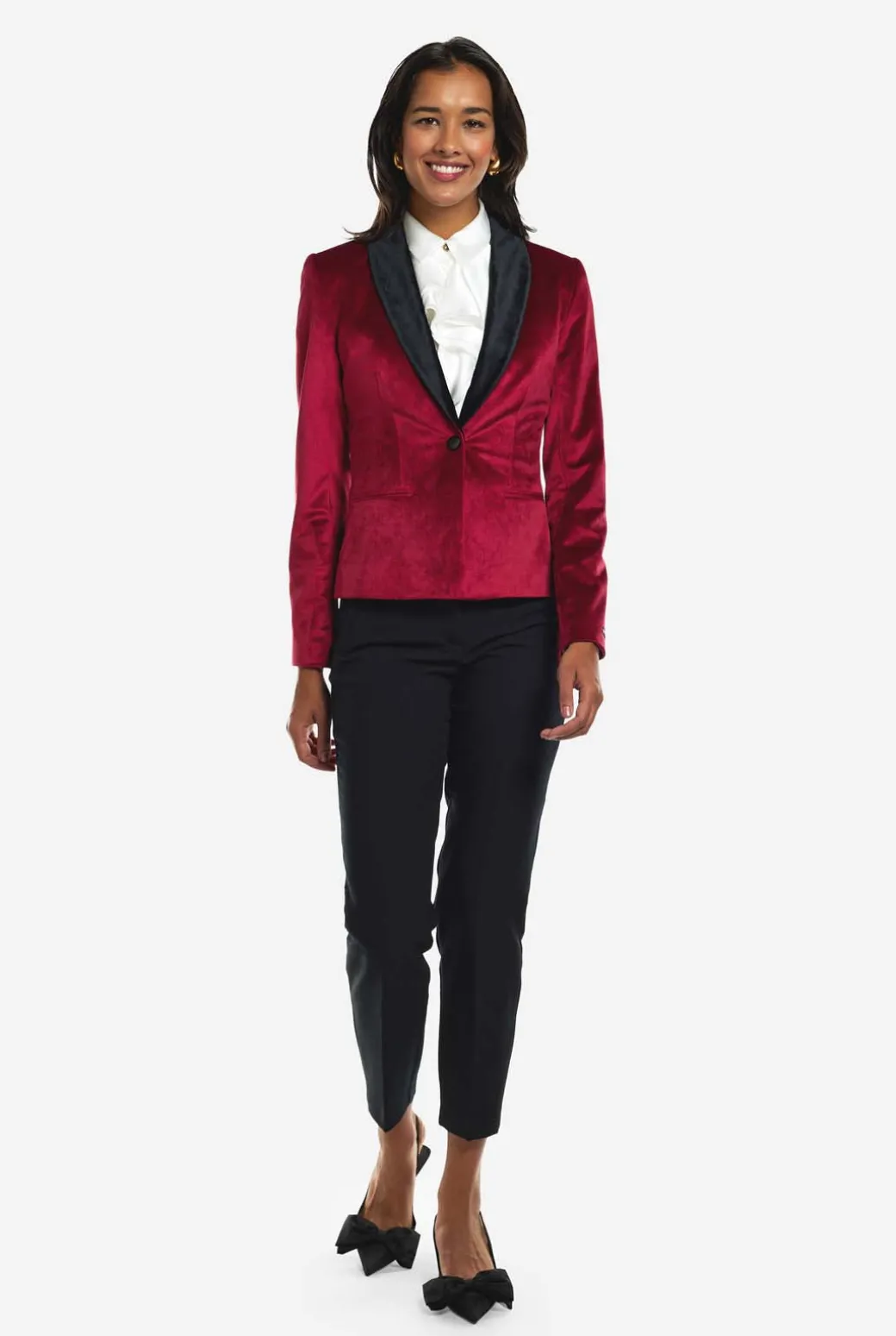 Geraffineerd en stijlvol maar toch gemakkelijk te dragen: dit bordeaux fluwelen dinnerjasje met een zwarte sjaal revers is een item dat elke vrouw in haar garderobe zou moeten hebben. Het zachte, gladde OppoSuits Deluxe jasje is je beste vriend tijdens de hele feestdagen (en daarna – het is tijdloos).