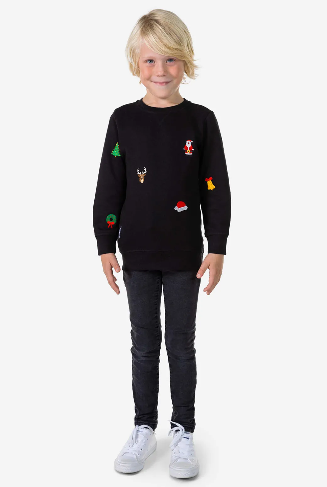 Beleef een vrolijke en gelukkige kerst met deze stijlvolle X-Mas Icons trui. Dit tijdloze, zwartgekleurde stuk is bedekt met sneeuwmannen, koekjes en zuurstokken, dus het is al gelijk een winnaar op het volgende kerstfeest! Als je op zoek bent naar een meer comfortabele en casual kerstlook waar uw kind dol op zal zijn, dan is dit de trui voor hem of haar.