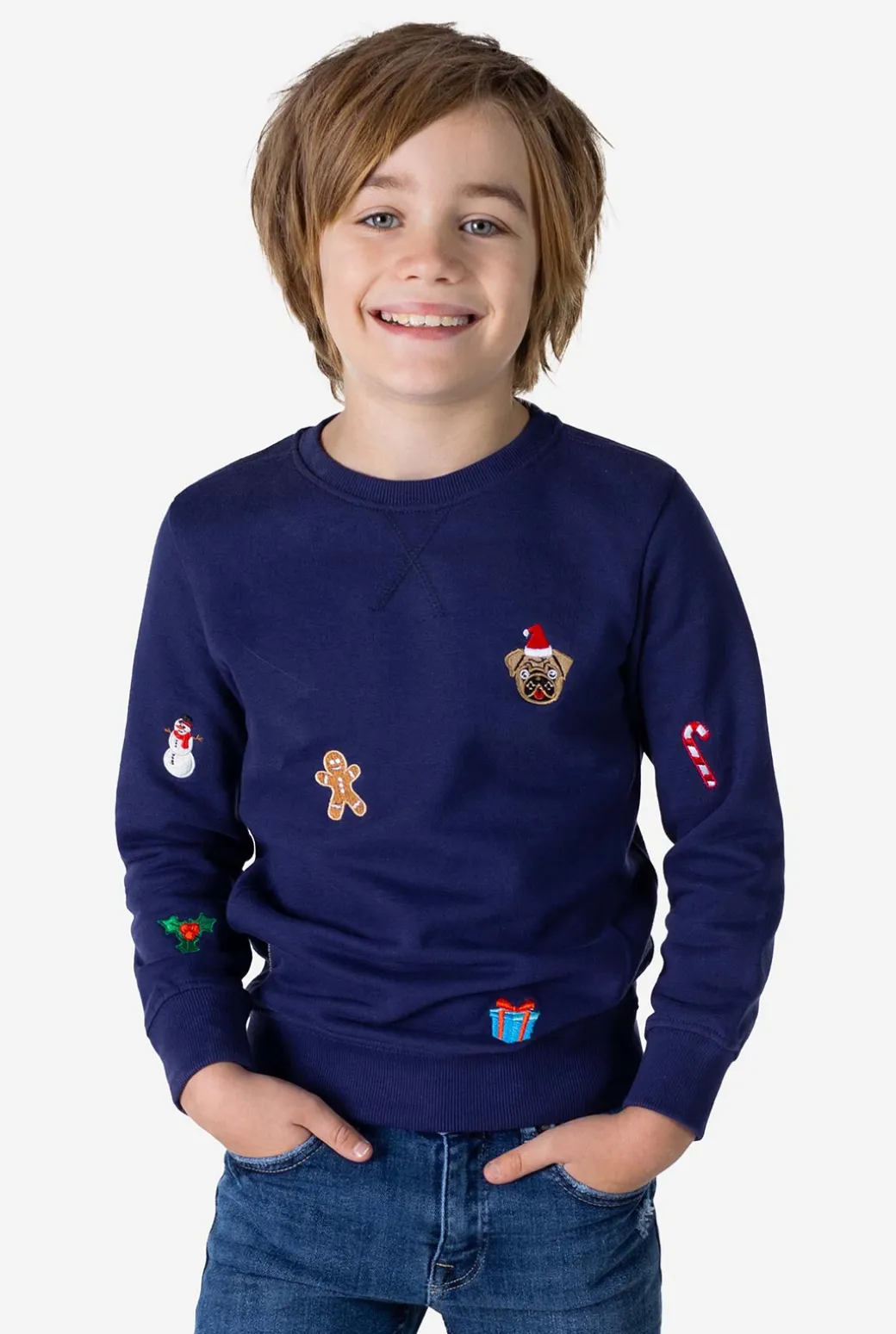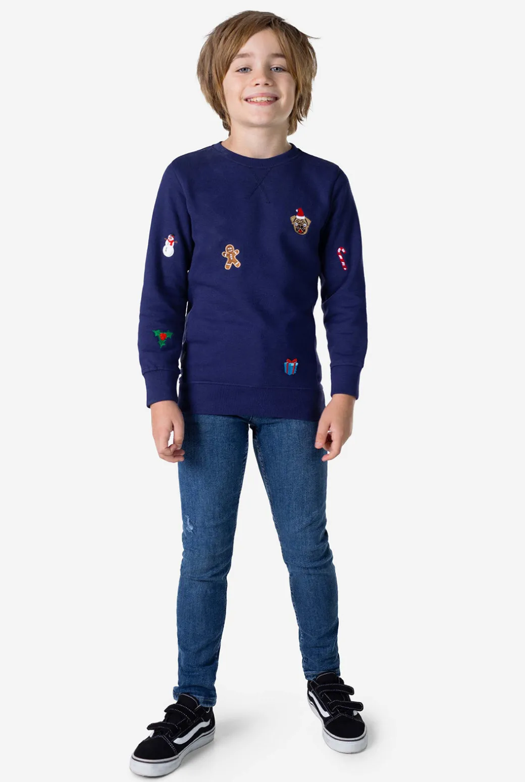 Beleef een vrolijke en gelukkige kerst met deze stijlvolle X-Mas Icons trui. Dit tijdloze, Navy-kleurige stuk is bedekt met sneeuwmannen, koekjes en zuurstokken, dus het is al gelijk een winnaar op het volgende kerstfeest! Als je op zoek bent naar een meer comfortabele en casual kerstlook waar uw kind dol op zal zijn, dan is dit de trui voor hem of haar.