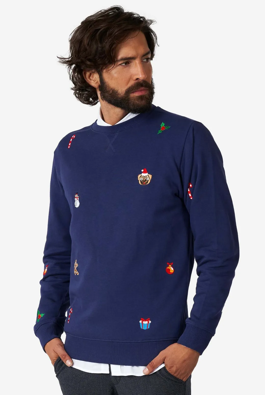Als je op zoek bent naar een stijlvolle en verfijnde kersttrui om jezelf in te hullen tijdens de feestdagen, dan is de marine-kleurige X-Mas Icons de sweater voor jou. Deze fijne, donkerblauwe Deluxe Sweater is geborduurd met essentiële kersticonen en is ontworpen met een zachte stof waardoor je hem vanaf nu tot aan eerste kerstdag (en ver daarna) wil dragen.